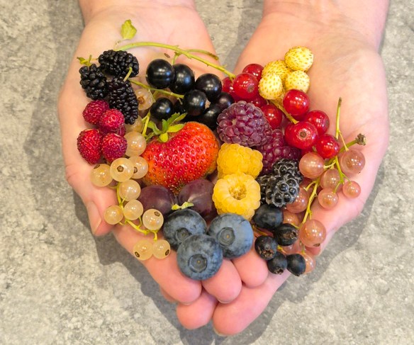 Summa summarum blev det ändå nästan exakt 190 kilos skörd av 88 olika sorters grönsaker, örter, bär och frukt! Det är jag mycket nöjd med med tanke på att ”tungviktarna” plommon, blåbär, vintersquash och valnötter nästan helt uteblev på grund av en sen frost i maj. 😦 Jag valde också att dra ner något på tomaterna eftersom vi fortfarande hade kvar tomatsås i frysen och absolut inte behövde fylla på det under året.