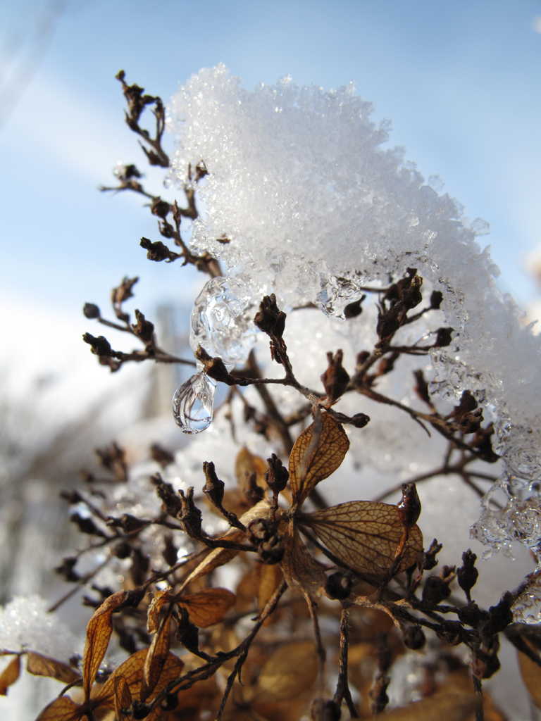 hösthortensia med snö Publicerat 3 februari, 2013 kl. 768 × 1024 i Vackrare med snö än utan Hösthortensians blommor sitter kvar hela vintern.