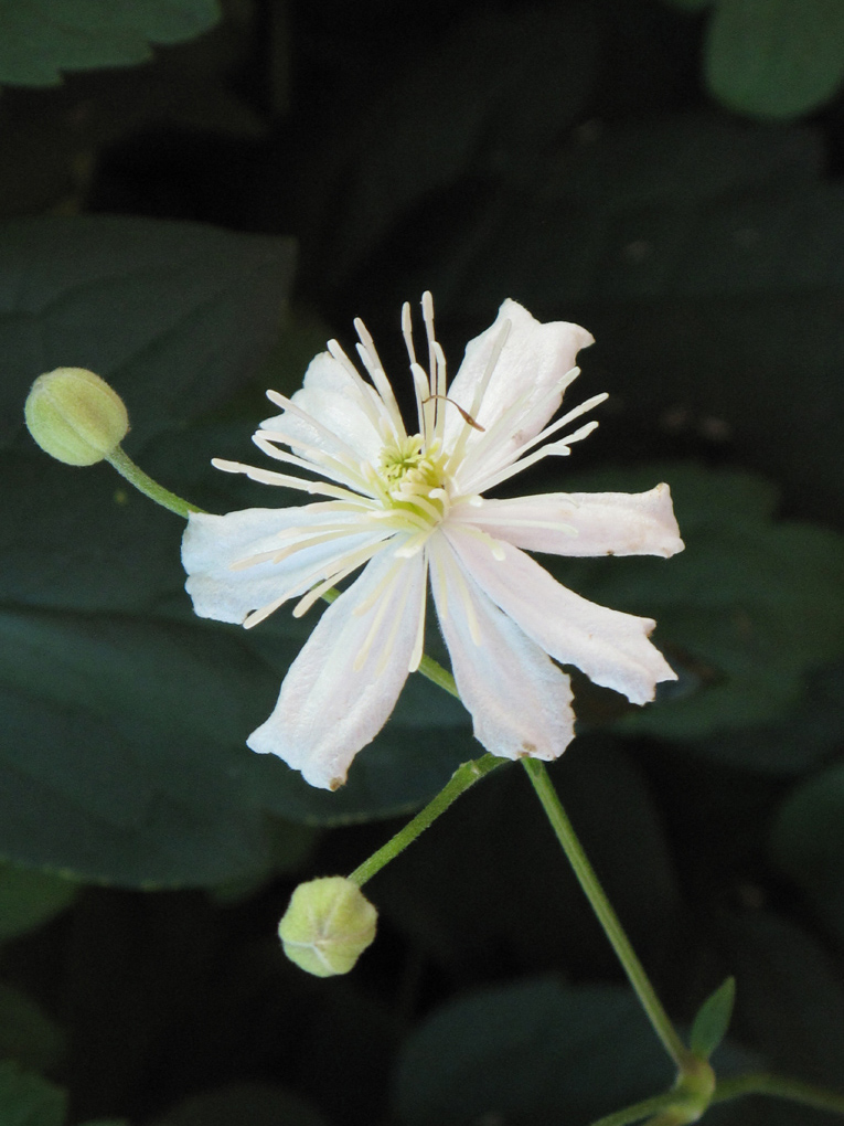Vår favoritklematis, som jag tycker har det lilla extra som Moseplassen efterlyser, är clematis ’Summer snow’ ur Vitalbagruppen.