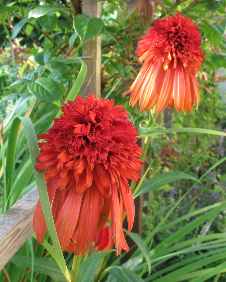 Rudbeckia Echinacea ’Hot Papaya’ är en av de nya sorterna med rudbeckior som har kommit på senare år. Våra plantor blommade riktigt bra först tredje året, så de är lite långsamma i starten, men sedan är de desto mer spektakulära. Färgen är riktigt härligt varmröd.