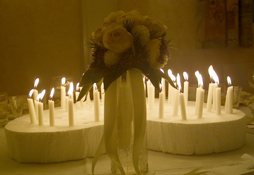 Saffranstryffel doppad i vit choklad och rullad i sockerrostade mandelspån