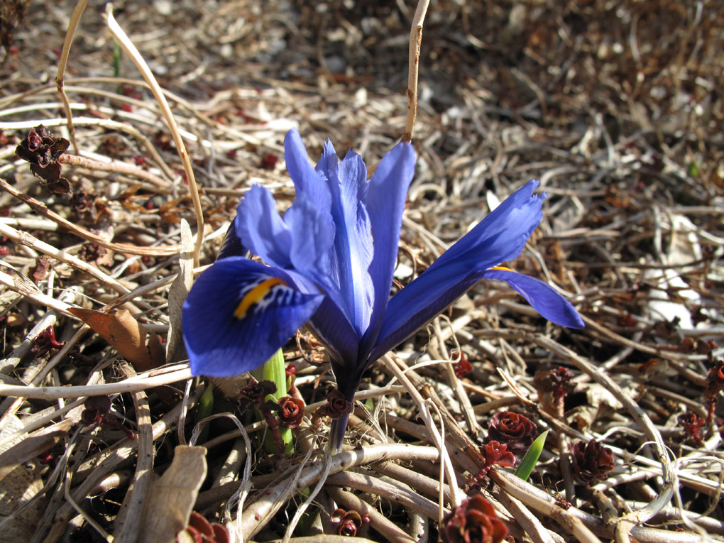 Tänk att jag aldrig tidigare sett en våriris, o så får jag se två på samma dag! Gillar irisar skarpt, men de jag haft i mina tidigare trädgårdar har varit de höga gängliga sorterna som man nästan måste binda upp för att de inte ska brytas av när det kommer en regnskur.