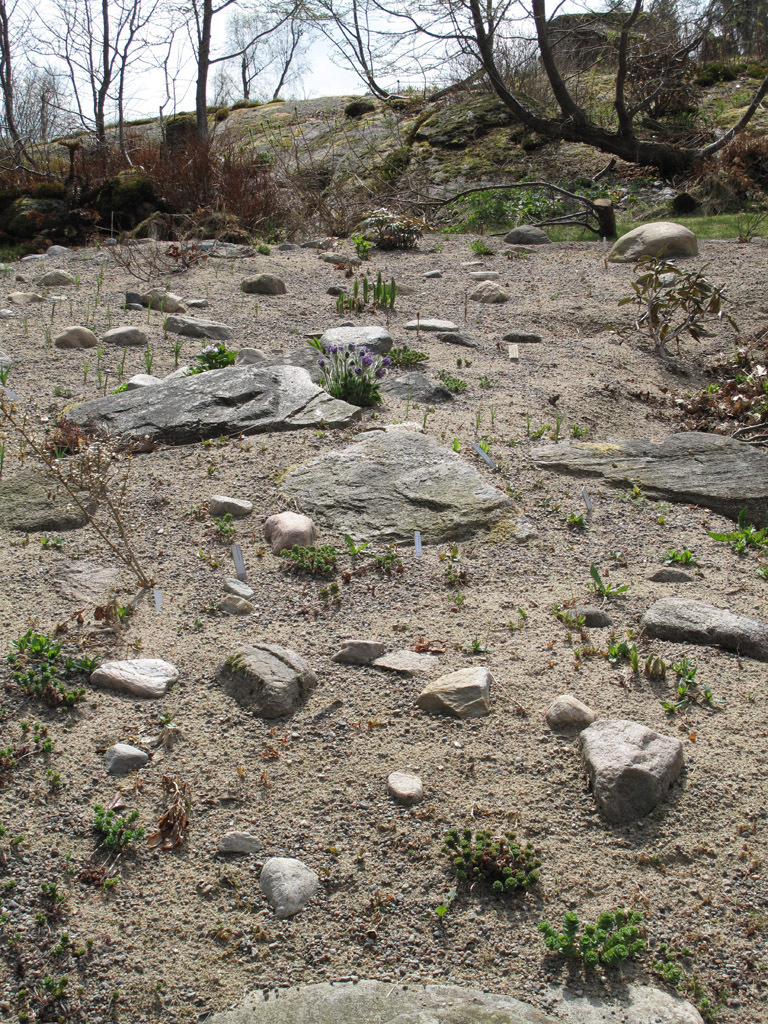 Tyvärr är ju våren sen i år, så växterna är fortfarande små och det syns inte så bra på bild, men slänterna är fulla av växter.