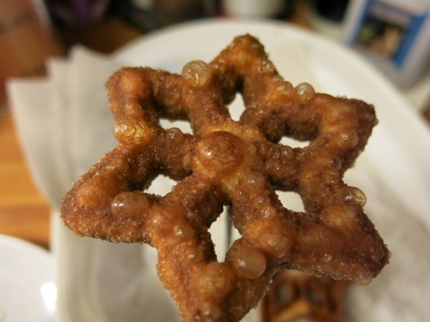 Saffranstryffel doppad i vit choklad och rullad i sockerrostade mandelspån