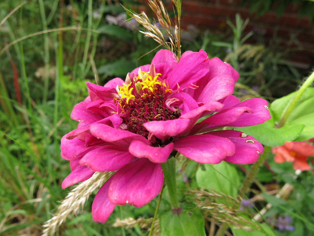 15 aug 15 solrabatten zinnia 3 Publicerat 24 augusti, 2015 kl. 1020 × 765 i Färgstark sensommarblomning ~ zinnior, lejongap, gräs och vädd i skön blandning