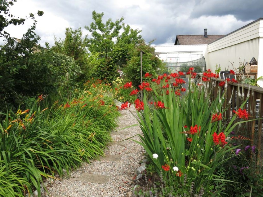 6 aug 16 stora trädäcksrabatten crocosmia lucifer dagliljor Publicerat 12 augusti, 2016 kl. 1020 × 765 i Sensommarblomning vid trädäcket ~ rött och eldsprakande
