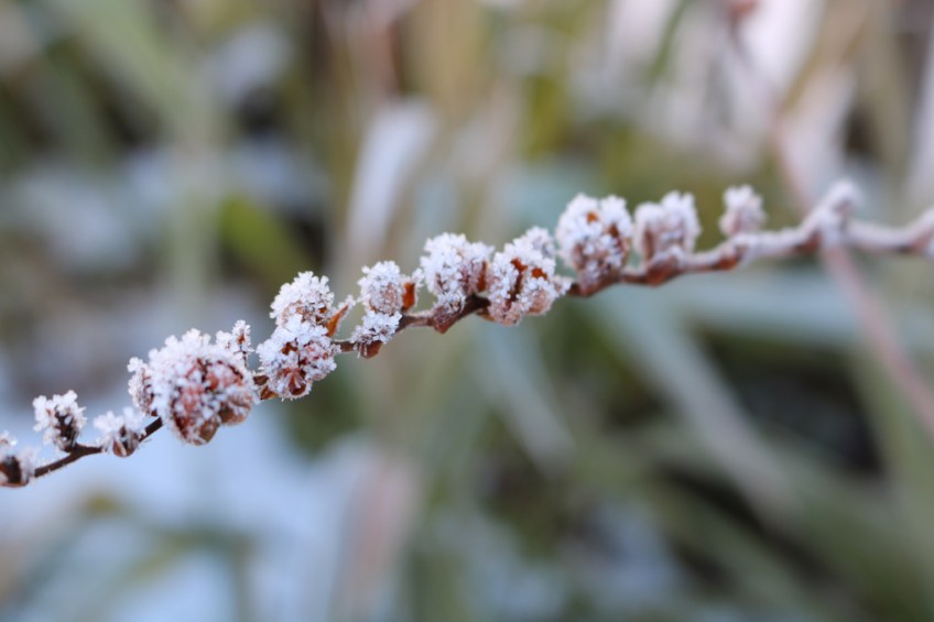 12-nov-16-frost-montbretia-lucifer Publicerat 13 november, 2016 kl. 1020 × 680 i Vintrigt vackert redan i november ~ frost, snö och solande papegojor Montbretia ‘Lucifer’