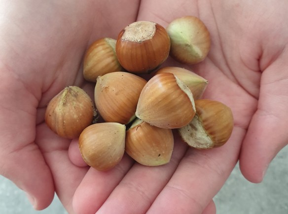 Hasseln ‘Barcelonski’ köptes in 2015 och 2019 fick vi första skörden av nötter!