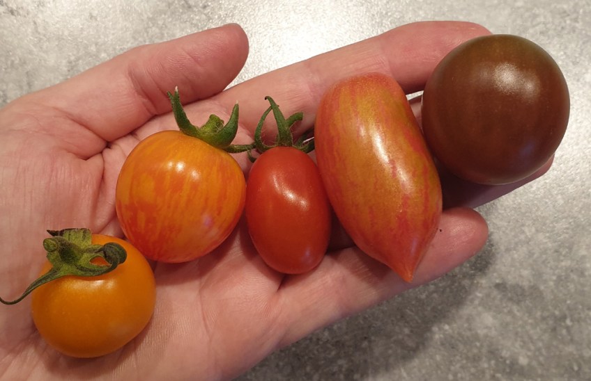 13 aug 19 tomater Publicerat 3 januari, 2020 kl. 1020 × 660 i Bär och frukt i trädgården från försommar till senhöst – vår egen skogsträdgård del 1 gul, Artisan Golden Bumble Bee, röd, röd, Black Sweet Cherry.