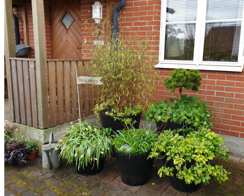 2 maj 20 ingången krukor Publicerat 8 maj, 2020 kl. 1092 × 877 i Magnoliablomning, japanska lönnar och tulpanfrossa i en nystädad trädgård