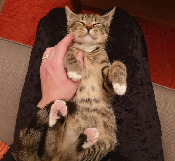 Tack Anita! Lilla Izumi är redan en självklar del i våra liv. Inte minst den mysiga ”ligga i knät på matte- stunden” på kvällen. Det är många år sedan jag hade en ”knäkatt” och jag tycker det är så mysigt.