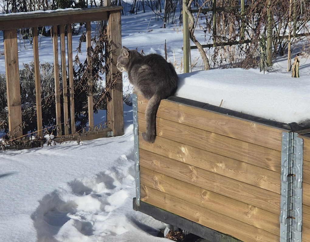 Nu verkar prognosen visa plusgrader framöver och jag laddar för att börja årets trädgårds- och odlingssäsong i trädgården! Här är en till som väntar på vårvärmen och torra tassar.