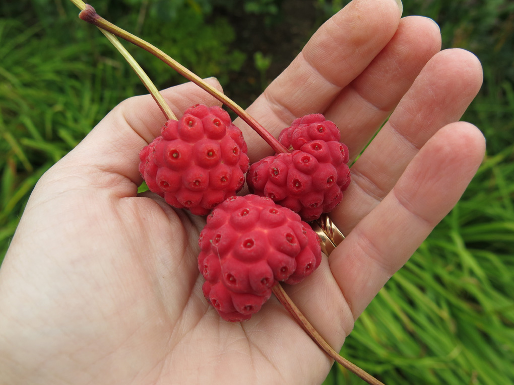 Blomsterkornell. Trädet de flesta har för de fina ”blommorna”, men som också ger goda bär. De kräver dock att innandömet pressas genom en sil eftersom skalet är bittert, men innandömet är helt klart värt det eftersom det smakar tropiskt av nektarin! Har kokat god ”mango chutney” av bären.