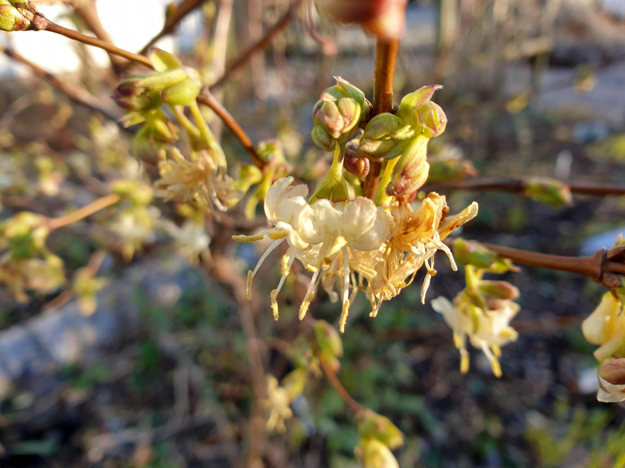 Den vita tibasten har blommat sedan tidig vinter och det kommer bara fler och fler knoppar.