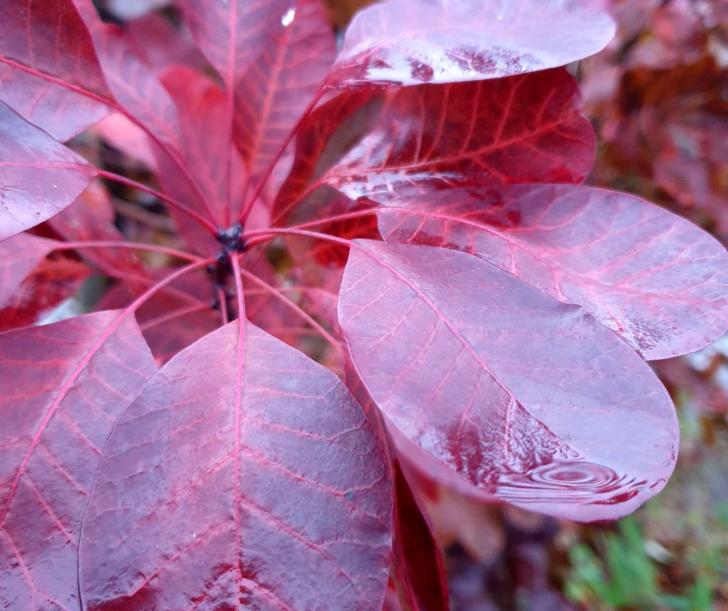 12 november. Nu har de flesta japanska lönnar tappat sina blad och andra höststjärnor tar vid, som perukbusken.