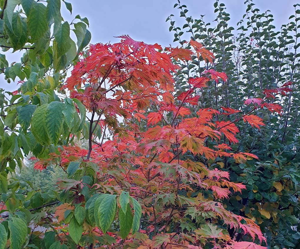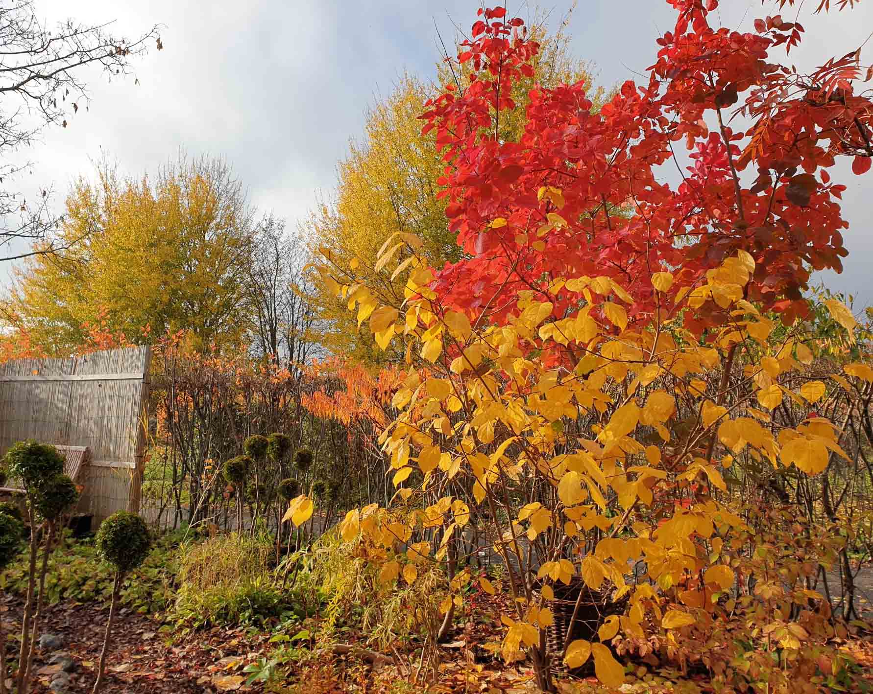 Ett annat nytillskott är körsbärskornellen ‘Szafer’ som fick så här fina höstfärger när sommarens klorofyll bleknade.