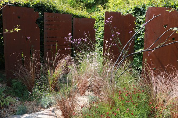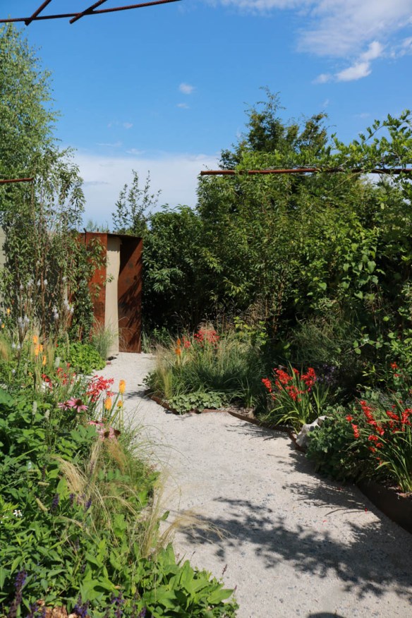 Utställningsträdgården som blev Best in Show, Andy Sturgeons M&G garden gillade jag mycket. Svartbrända träväggar och lummig grön plantering.