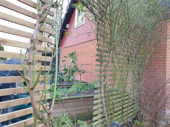 Någonstans på framsidan ska jag försöka plantera klätterbönan ‘Nybraaten’ som jag fått frö till av en odlarvän. Måste odla den på avstånd från övriga bönor om jag ska kunna ta sortäkta frö från den.