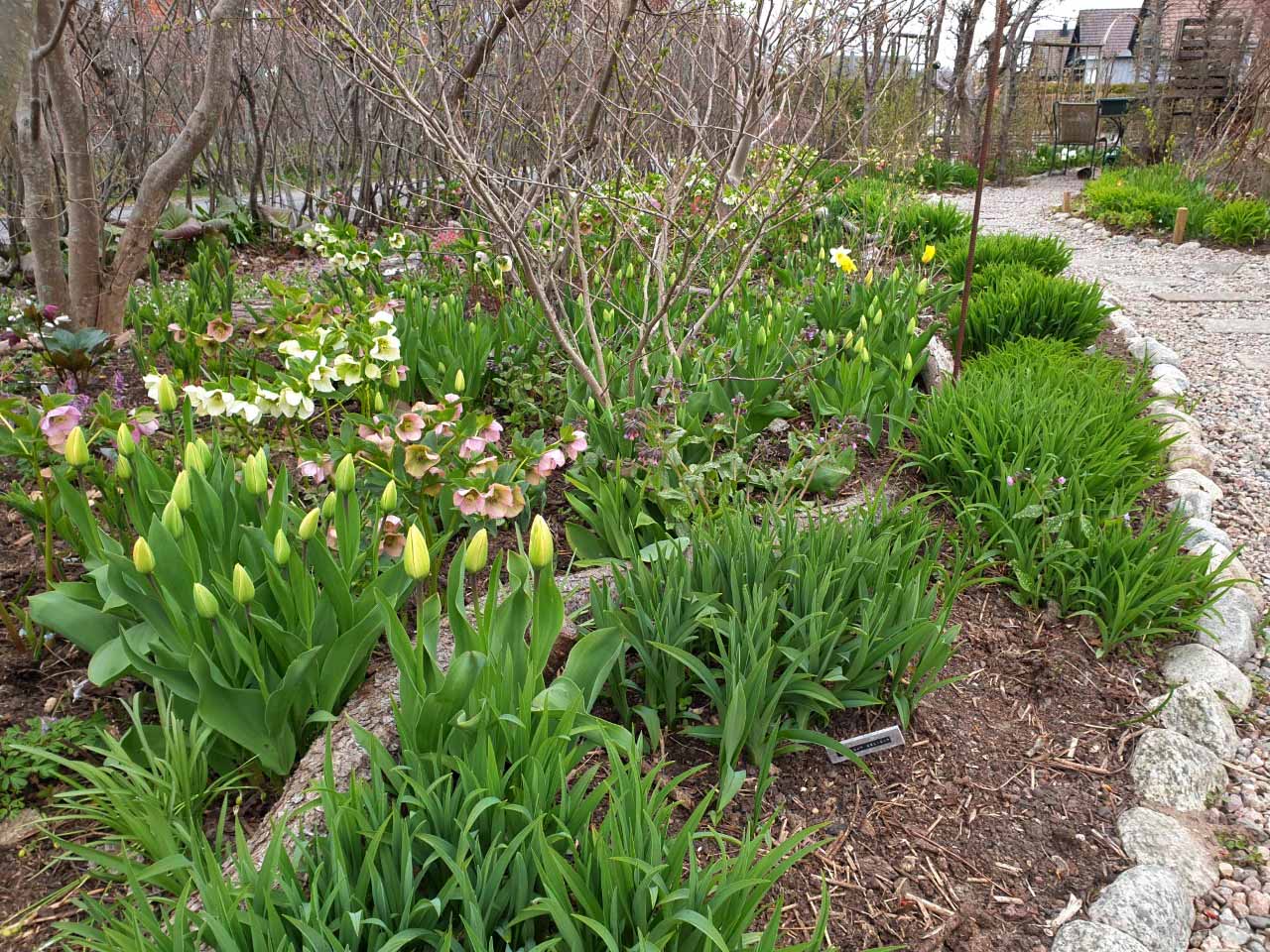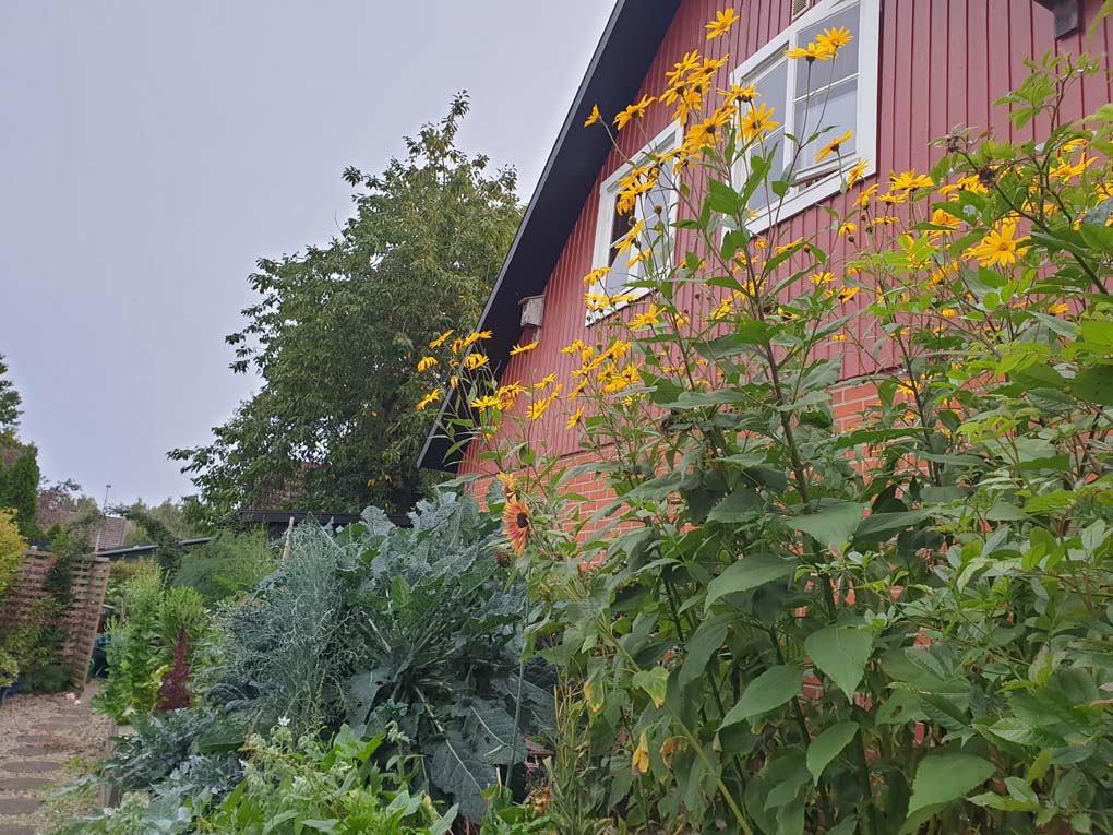 Jordärtskockorna får i år flytta ut från den perenna bädden, de tar så mycket plats, fukt och skuggar övrigt. Dem sätter jag i en balja bredvid i stället. I en annan balja ska jag testa märgärtan ‘Mors Stora’. Den blev två meter hög och var lite svår att skörda i en av de upphöjda bäddarna… 🙂