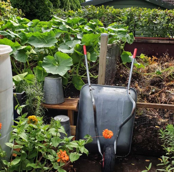 I ena kompostfacket i sydöstläge brukar jag odla vintersquash, men i år ska jag prova att odla majs där i stället. Förra årets skörd av vintersquash blev ändå inte vad den brukade då mördarsniglarna var så många att jag fick sätta squashplantorna i krukor för att få ha dem i fred. Pumporna vägde ett kilo styck i stället för fyra på hösten… 😦 Men det finns kvar puré i frysen, så det gör inte något att det blir ett års paus.