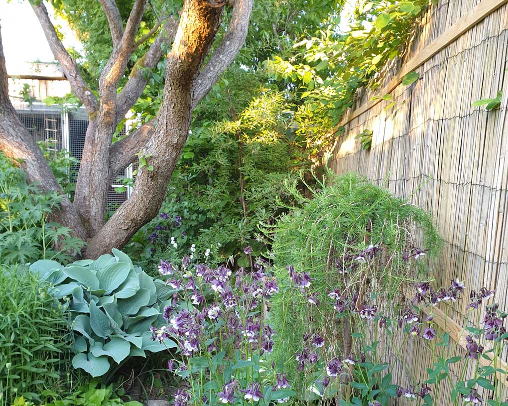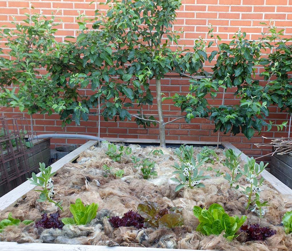 2. Först trädgårdsmålla ‘Rubra’, sedan färskpotatis och efter potatisen är skördad rödbeta ‘Bulls Blood’, långa rädisan ‘Rose de paques’ och någon spenatsort. Kanske lite blodklöver också, om det är bar yta kvar.