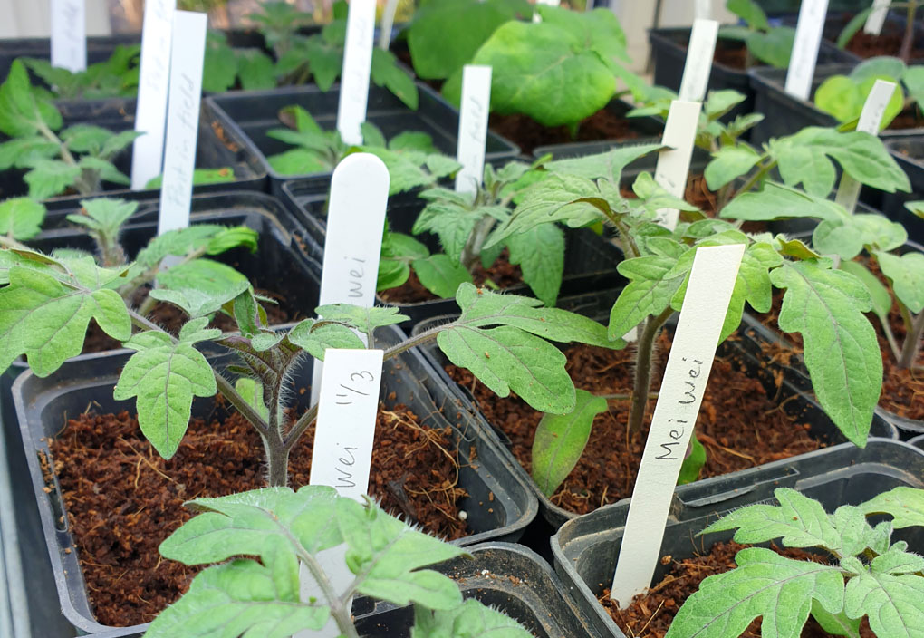 I enskilda krukor odlar jag tomaterna ‘Sapporo’, ‘Pixie Striped’, ‘Tumbling Tom Yellow’ och ‘Mini Parvola’. Den sistnämnda är ny, men jag fick smaka den hos en trädgårdsvän förra året. Pixie Striped överraskade 2024 med att vara först ut att mogna, trots att den inte såddes först och stod på friland! I år får den börja i växthuset och sedan fortsätta på trädäcket. Förhoppningen är riktigt tidig skörd.