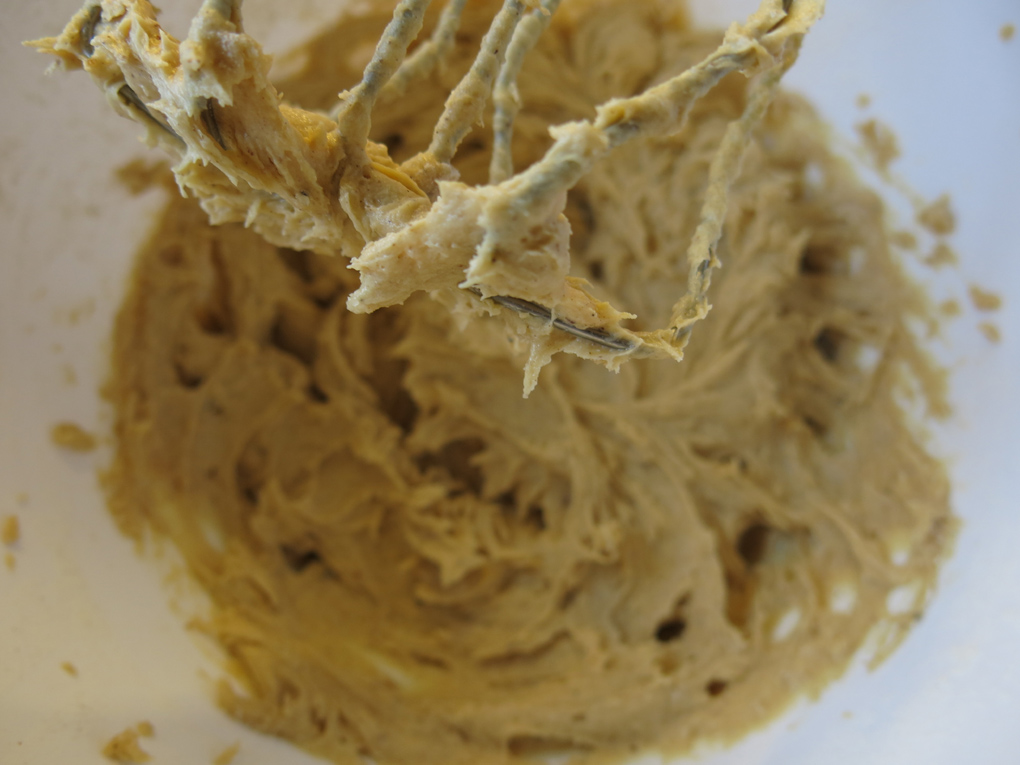 Blanda mjöl, salt och kryddor i en skål. I en annan skål rörs socker och smör pösigt. Vispa sedan äggen i en tredje skål och rör ner dem lite i taget i smörblandningen. Om den skär sig, ta i lite mjöl. När alla äggen är iblandade rörs mjölblandningen försiktigt ner i smeten.