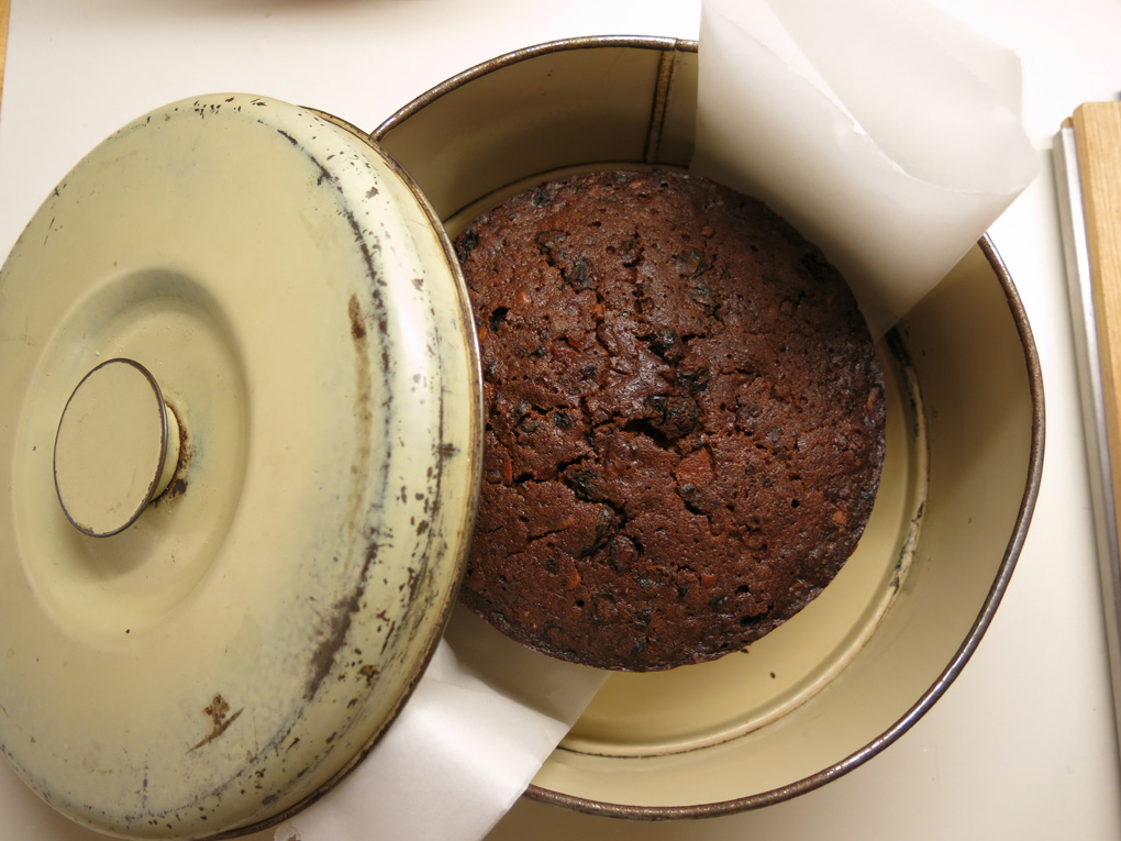 Förvara kakan som den är i en tät plåtburk och ”mata” den med en sked brandy då och då. Stick med en provnål i kakan innan brandyn hälls på så sugs den lättare ned i kakan. Vänd gärna på kakan så att brandyn fördelas jämnt i den. Kakan förvaras i rumstemperatur. Och – om du inte vill ha alkohol i kakan – lägg frukten i blöt i lite färskpressad apelsinsaft innan du bakar och mata sedan kakan med apelsinsaft veckorna fram till jul i stället.