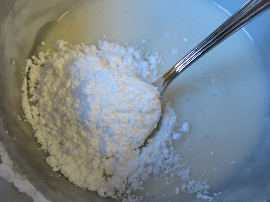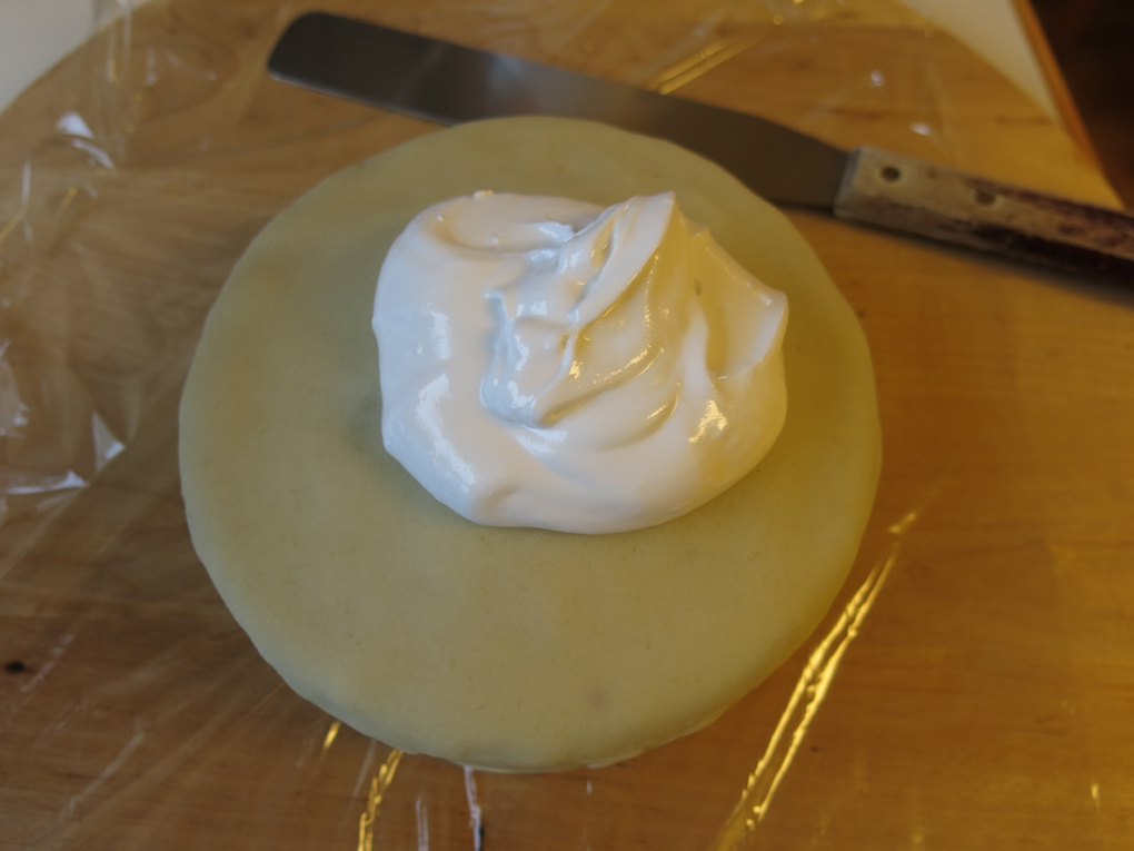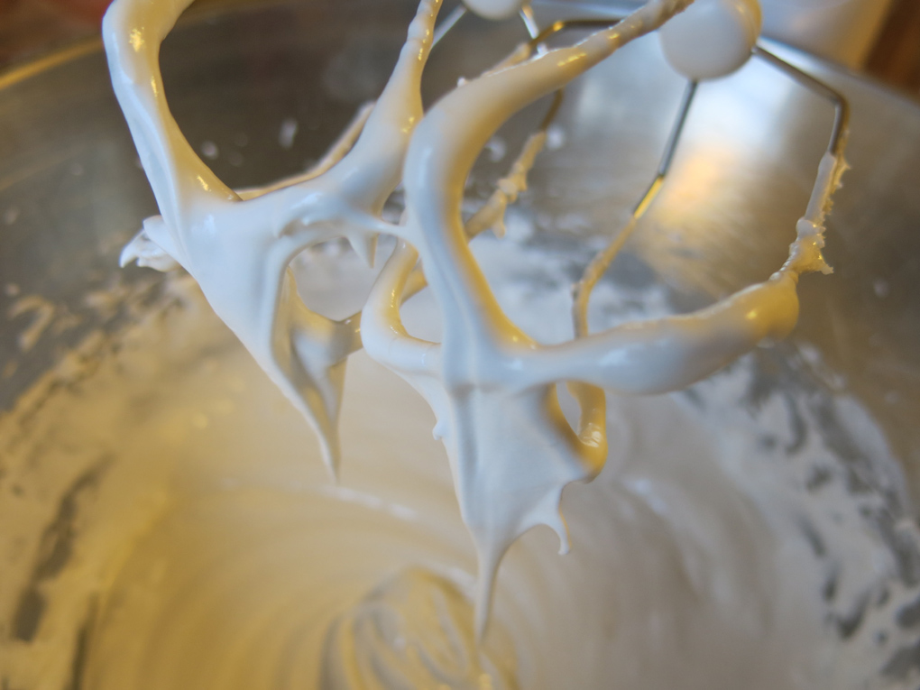 Blanda i sockret i äggvitorna tills blandningen är tjock och det inte går att röra i mer florsocker. Ta sedan fram elvispen och vispa på högsta läget i ca 10 minuter. Blir den för tjock för att bre ut tar du i pyttelite äggvita till. För att få glasyren jämn på kakan använder man en palett (lång smal stekspade), har du inte en sådan kan man använda en rendiskad plastlinjal och dra med.
