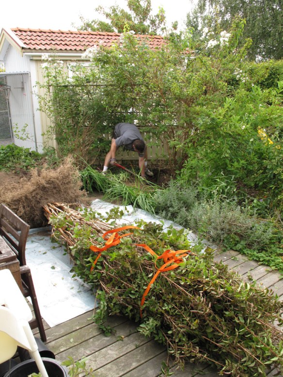 Att grannarna och andra som passerade förbi undrade vad vi egentligen höll på med behöver jag knappast skriva! Det undrade vi själva också då och då när omfattningen av vad vi höll på med kom ifatt oss. En del undrade varför vi inte var med på allra första Tusen Trädgårdar 2010: det här är varför! Halva trädgården var uppgrävd, det var byggkaos typ överallt!