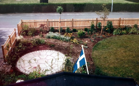 Våren 2001 hade jag tagit in ett flertal offerter, lagt en beställning på ett halvdussin nya träd och färdigställt en detaljerad planteringsskiss till det som skulle bli vår nya framsida, vår frontgarden.