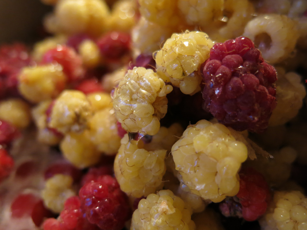 Hallon blandade med syltsocker. Om fem minuter är sylten klar!