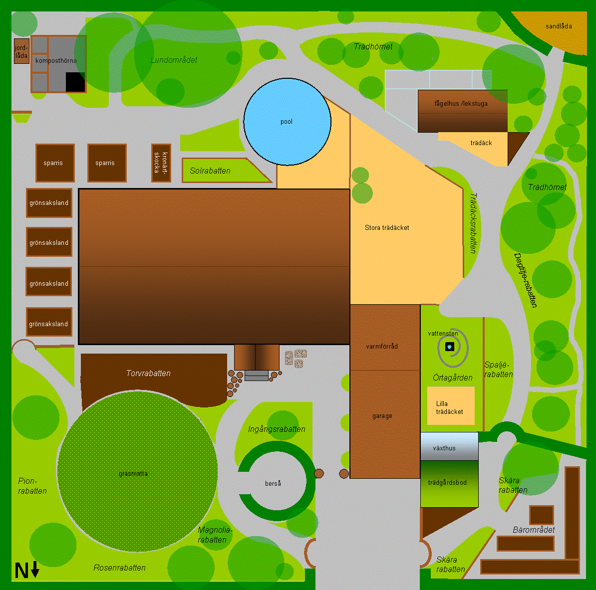Stora omgörningen baksidan 2008-2012 (Dagliljerabatten, Stora trädäcket, poolen mm)