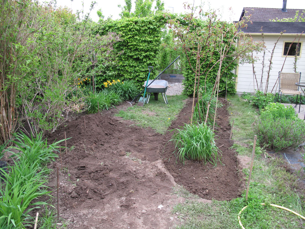 2010_05 Uteplats 1 Publicerat 22 februari, 2013 kl. 1020 × 765 i Stora omgörningen baksidan 2008-2012 (Dagliljerabatten, Stora trädäcket, poolen mm) 2010 maj. Spaljérabatten grävs och planteras. Gilla Laddar in …