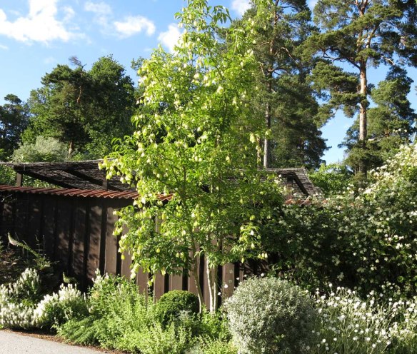 Vi var runt i flera riktigt fina trädgårdar och allt avslutades sedvanligt med stor plantmarknad. Där köpte jag med mig ett nytt fruktträd och några småplantor, vad som kan tas med på tåg är ju något begränsat. Jag bjöd dock på dagens garv när en annan trädgårdsamatör kände igen mig på tåget och sa något i stil med ”det kunde jag ju gett mig på, att det var en trädgårdsamatör som släpar med sig träd på tåg!” Nu var trädet bara en meter högt, så det var fullt görligt. 🙂