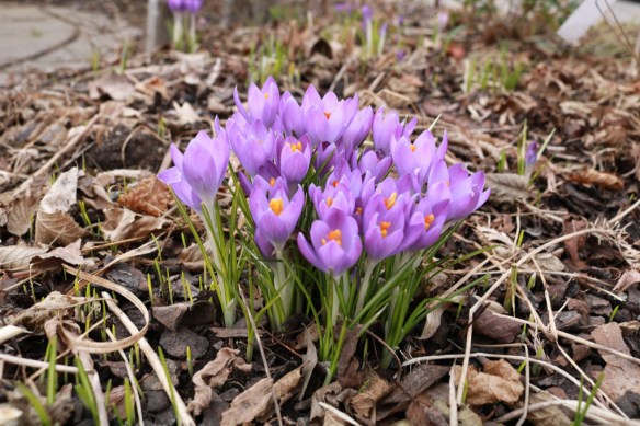 I februari muntrade krukodlade vinteriris av sorterna ‘Painted lady’, ‘Blue note’ och ‘Katharina gold’ upp när det var snö och regn om vartannat.