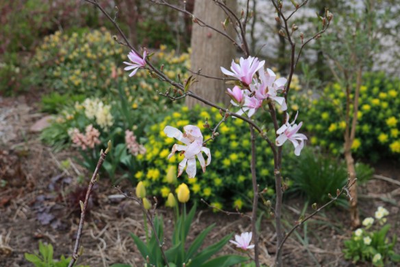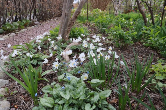Vissa delar av trädgården var fina utan någon städning. Dit hörde dammhörnan.