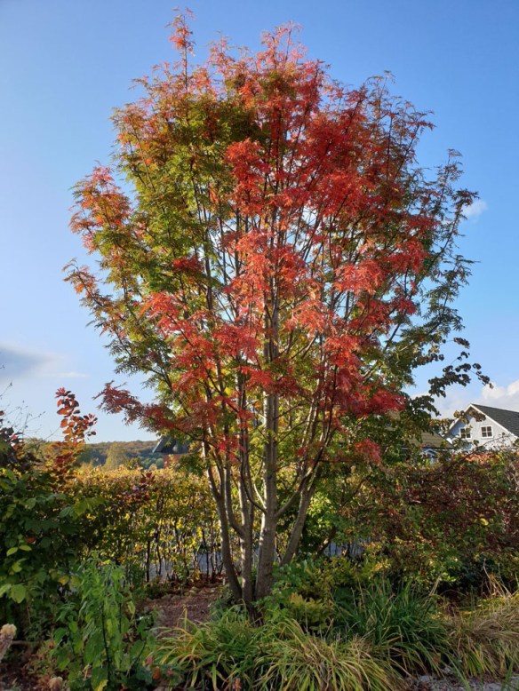 Så istället för en brunbränd gräsmatta möts vi nu av detta när vi rundar huset och kommer ut på framsidan. Trädens spegeleffekt blev en bonus, den hade jag i ärlighetens namn inte funderat så mycket på innan.