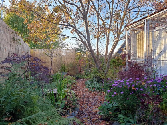 I många år har den enda gräsmattan i vår trädgård varit cirkeln på framsidan. Den som jag designade 2001, omgiven av frodiga planteringar på alla fyra sidorna (läs mer HÄR). Planteringarna fick en översyn 2022 (läs mer HÄR) och gjordes då ännu mer torktåliga än vad de redan var.