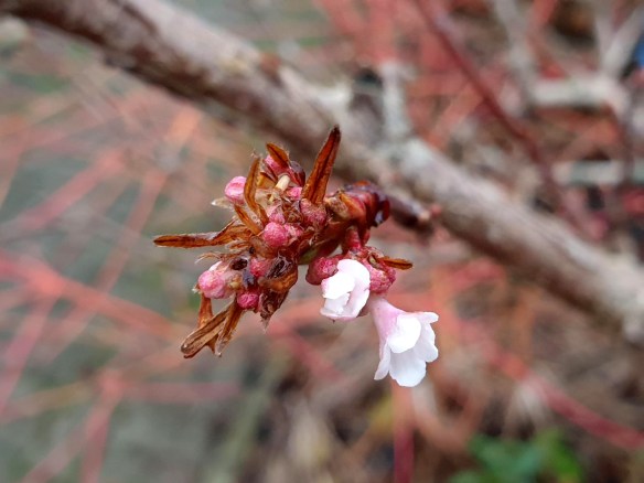 Den vita tibasten började blomma redan i november (HÄR skrev jag om vad som blommade i trädgården för 1,5 månader sedan). Har två plantor som mamma har dragit upp från frö. Det här är den största som numera är runt halvmetern hög.