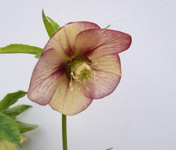 Det här är apriltry ‘Winter Beauty’ och den gör verkligen skäl för sitt namn. Busken köptes i februari 2020 på Garteriet Spiren i Danmark, men blev sedan stående i en stor kruka tills hösten 2021. Förra årets torra sommar krävde extravattning, men den svarade fint på att bli utplanterad och har satt massor av knoppar. Den står mellan våra stora ‘Moonlight’-rosor vid staketspaljén nära vattenstenen. Det är västerläge och ganska skyddat där.