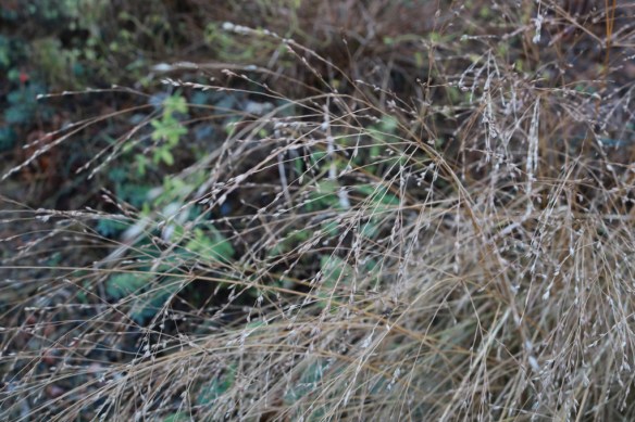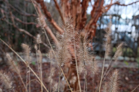 Fast brunt kan ju vara snyggt också! Som Miscanthus sinensis ‘Morning Light’ vars långa strån har eleganta böjar. I bakgrunden syns kopparlönnen, Acer griseum.
