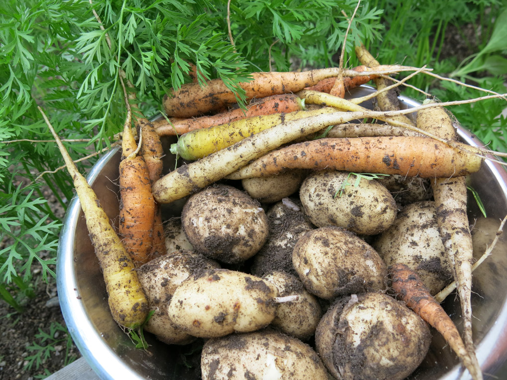 Men samtidigt är det dags att börja njuta av egna nypotatisar och de första lillfingertjocka morötterna…första färskpotatisen 1
