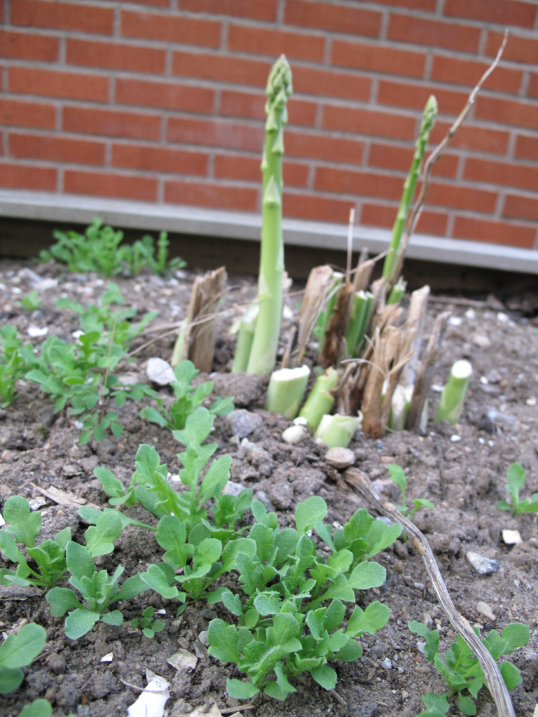 Sparrisen växter så det knakar, vi har redan skördat fyra rejäla buntar. Varje morgon tar jag en runda och skär av de stjälkar som vuxit sig tillräckligt långa. Nu var det också dags att rensa bort mattan av frösådd ettårig vallmo som jag har samplanterat med sparrisen. Jag sparar 8-10 plantor per odlingsbädd och håller tummarna att färgerna blir de jag önskar…