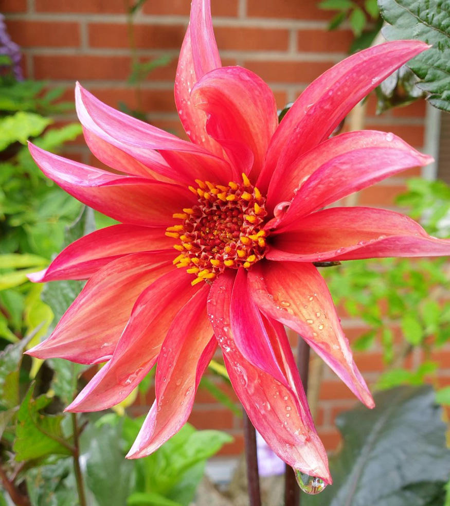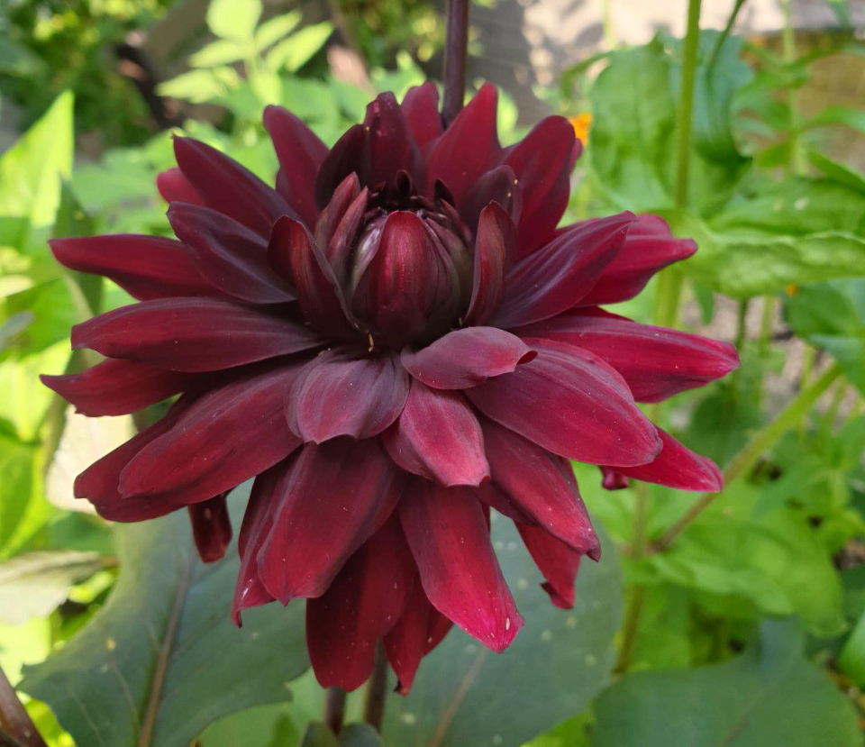 Önskar en fin första septembervecka! Visst märks det att höstkylan har anlänt, luften känns klarare och dimmorna lättar på morgonen. Och det mörkar lite väl tidigt på kvällarna… Tur vi har vår ljusslinga som skapar skymningsstämning i trädgården. Dahlian ‘Happy Single Kiss’ är en annan av växterna som blommar i brända toner, så snyggt ihop med de mörka stjälkarna.