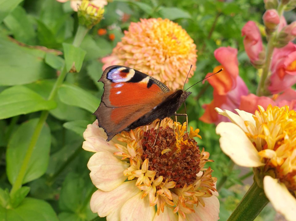 Nu blommar allt som bäst och ger precis den där mixen i rabatten som jag ville ha. Och inte gör det något om zinniorna och lejongapen inte klarar vintern, för det ska de i alla fall inte (även om det händer att ett och annat lejongap övervintrar en mild vinter här nere i Skåne).