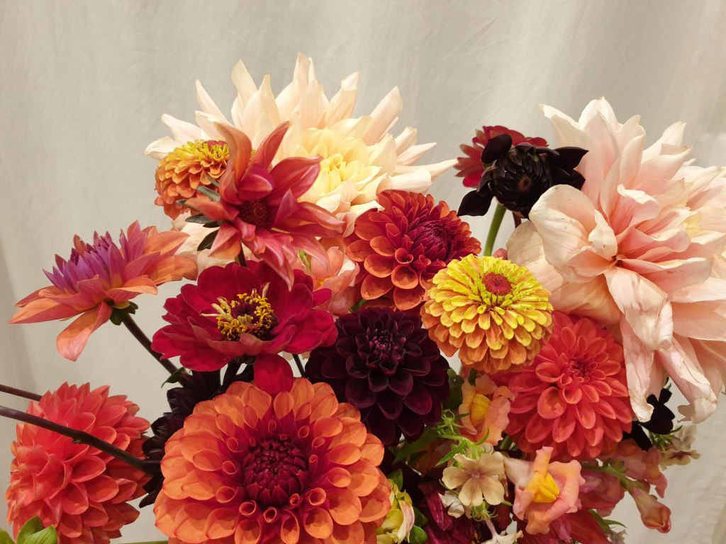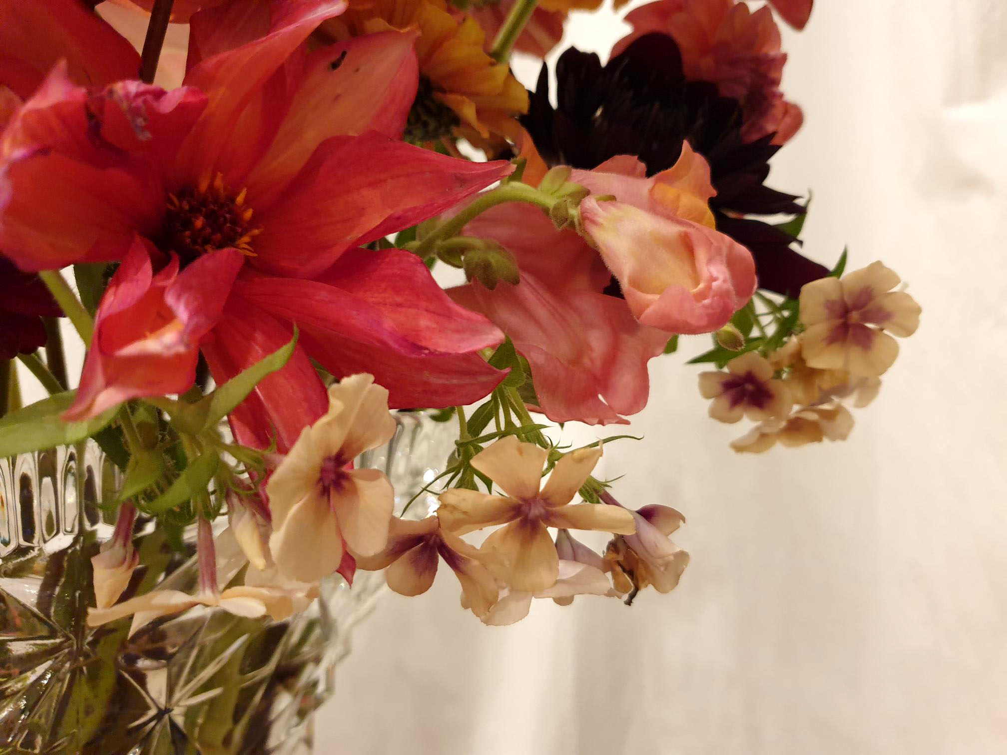 Det är siste september och jag måste ju bara visa förra helgens dahliabukett. Det var det här jag drömde om i våras när jag sådde frön och drev dahliaknölar, det här jag såg framför mig när jag suckade över allt som skulle planteras ut i juni…