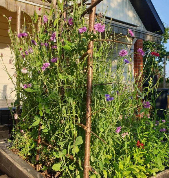 Hösten 2021 tog jag hand om några dahliafröer jag hittade när jag tog upp knölarna. Sådde tio frön och en av de som blommade först var den här skära som pollinerarna gillade, så den fick stanna. Några andra hann aldrig blomma, så de får en andra chans 2023.