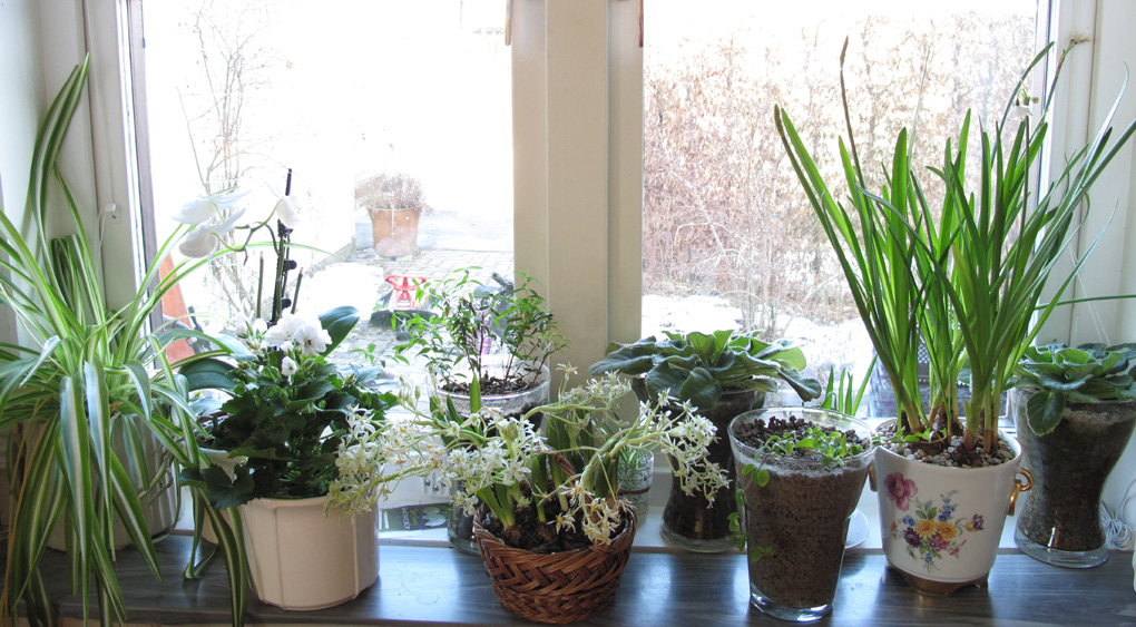 Det har blommat och blommat hela februari, nu är vi inne i mars och än är det inte slut på knopparna! På fönsterbrädan samsas kattens ampellilja med min återblommande vita brudorkidé, vit engelsk pelargon, myrten, stjärnlök Ornithogalum balansae, saint paula och den söta sommarsnöklockan Leucojum aestivum. Både stjärnlöken och sommarsnöklockan ska jag plantera ut i Lundområdet så småningom när de har blommat över. Men ett tag till njuter jag av deras söta blommor i köket.