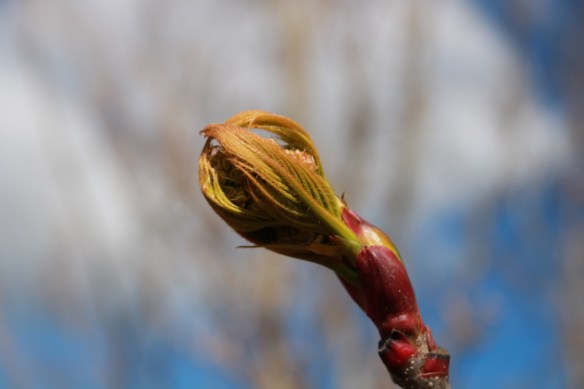 Knopparna på Ullungrönnen ‘Dodong’ fortsätter veckla upp sig.
